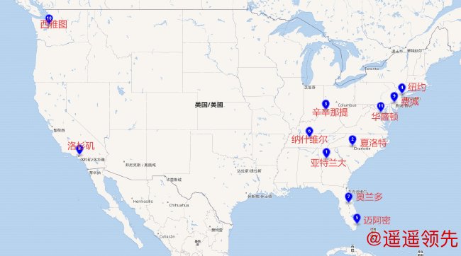 首先来看一下各个场地之间的大致距离,东海岸几座城市相对而言对转场影响不大,东西海岸之间的辗转将是小组赛中格外需要注意的,而迈阿密的硬石体育场和西雅图的流明体育场是直线距离最远的两个球场。