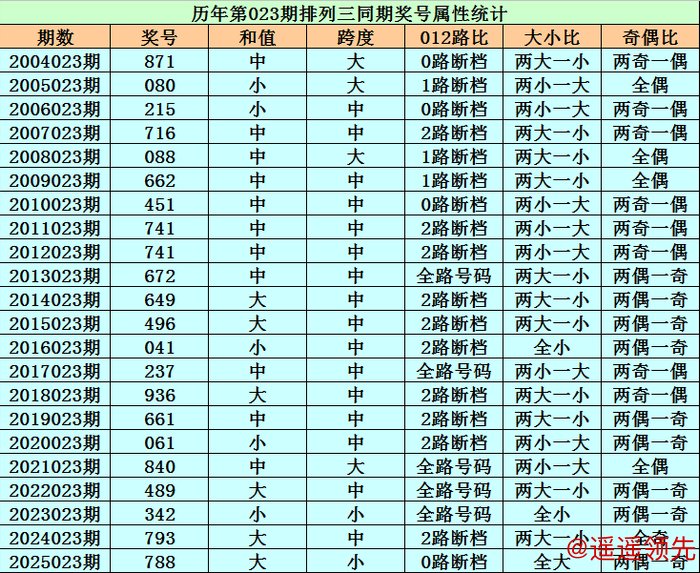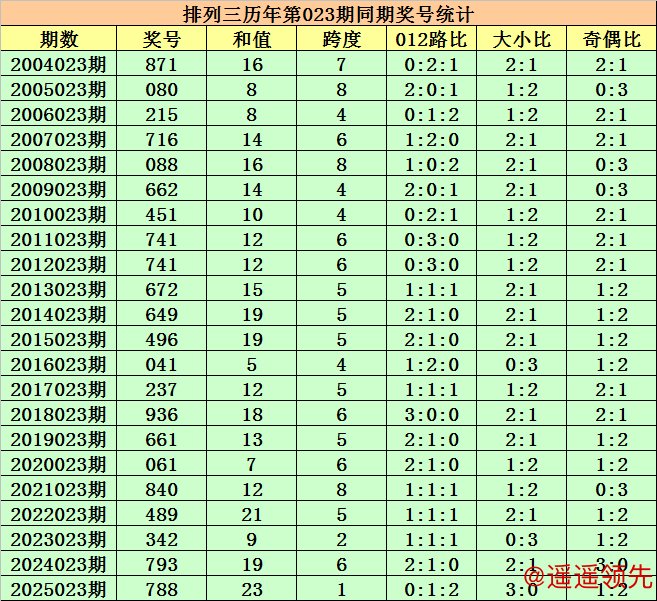历史上第2026023期排列三已开出22期奖号了,历年同期奖号分别为:871、080、215、716、088、662、451、741、741、672、649、496、041、237、936、661、061、840、489、342、793、788,详细统计见下表: