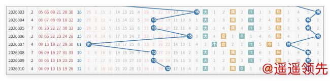 蓝球方面,近7期有5期开出蓝球第三区的号码(09-12),大码和合数更是同时近8期开出7期,本期需要提防小码回补的可能性,结合近期1路码持续高热度的特征,可以看好01、07。